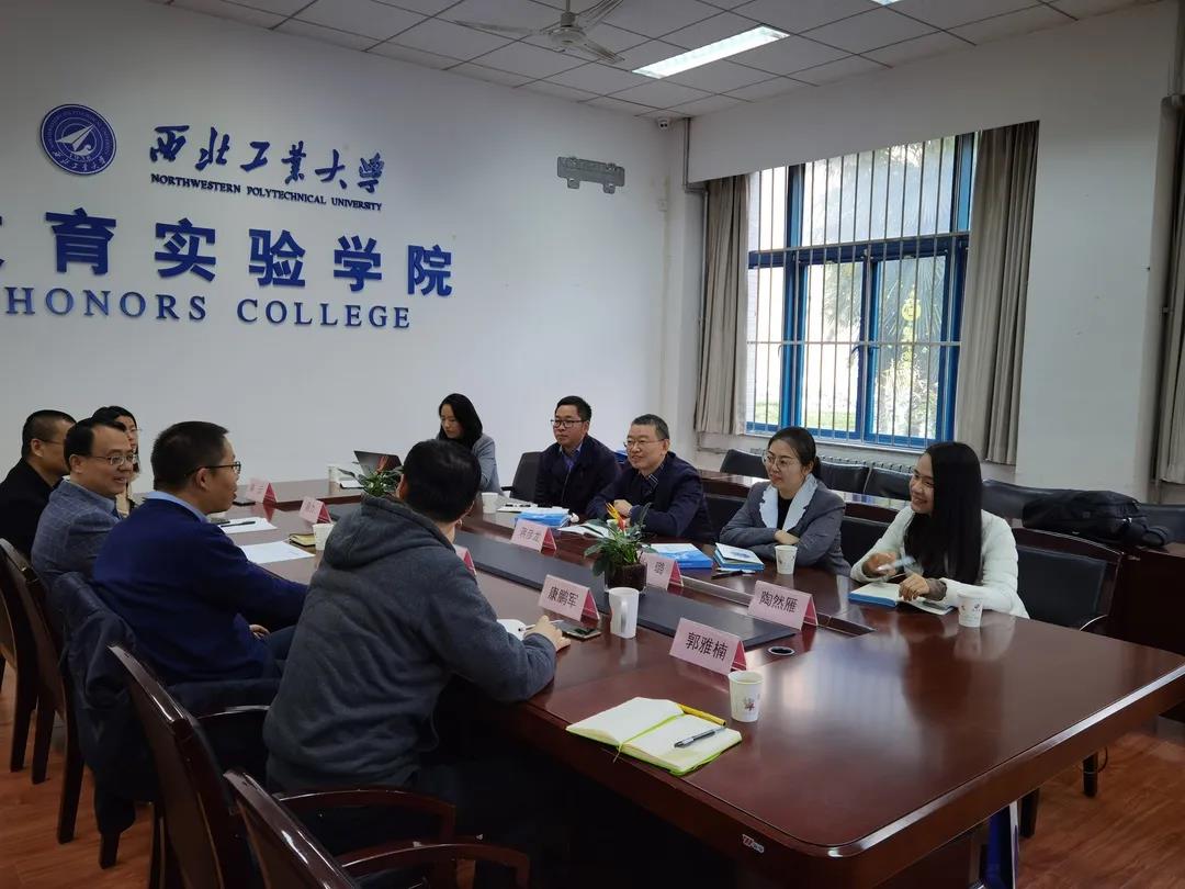 在西工大教育实验学院,蒋彦龙一行参观了学院大楼,学习了教育实验学院的文化与育人理念。教育实验学院院长王掩刚介绍了教育实验学院的历史沿革、发展现状、改革举措及相关成效,重点介绍了拔尖创新人才培养的定位思考与改革实践,以及国际化培养等内容。蒋彦龙表示,教育实验学院办学理念先进,改革力度强劲,育人成果显著,对awc万象城体育更好办学具有非常大的借鉴意义。双方就拔尖创新人才培养模式、学生教育管理工作机制、国际化培养平台建设等内容展开交流,在共建荣誉学院学生联盟、共享国际化交流资源与课程、加强育人协同等达成合作共识。