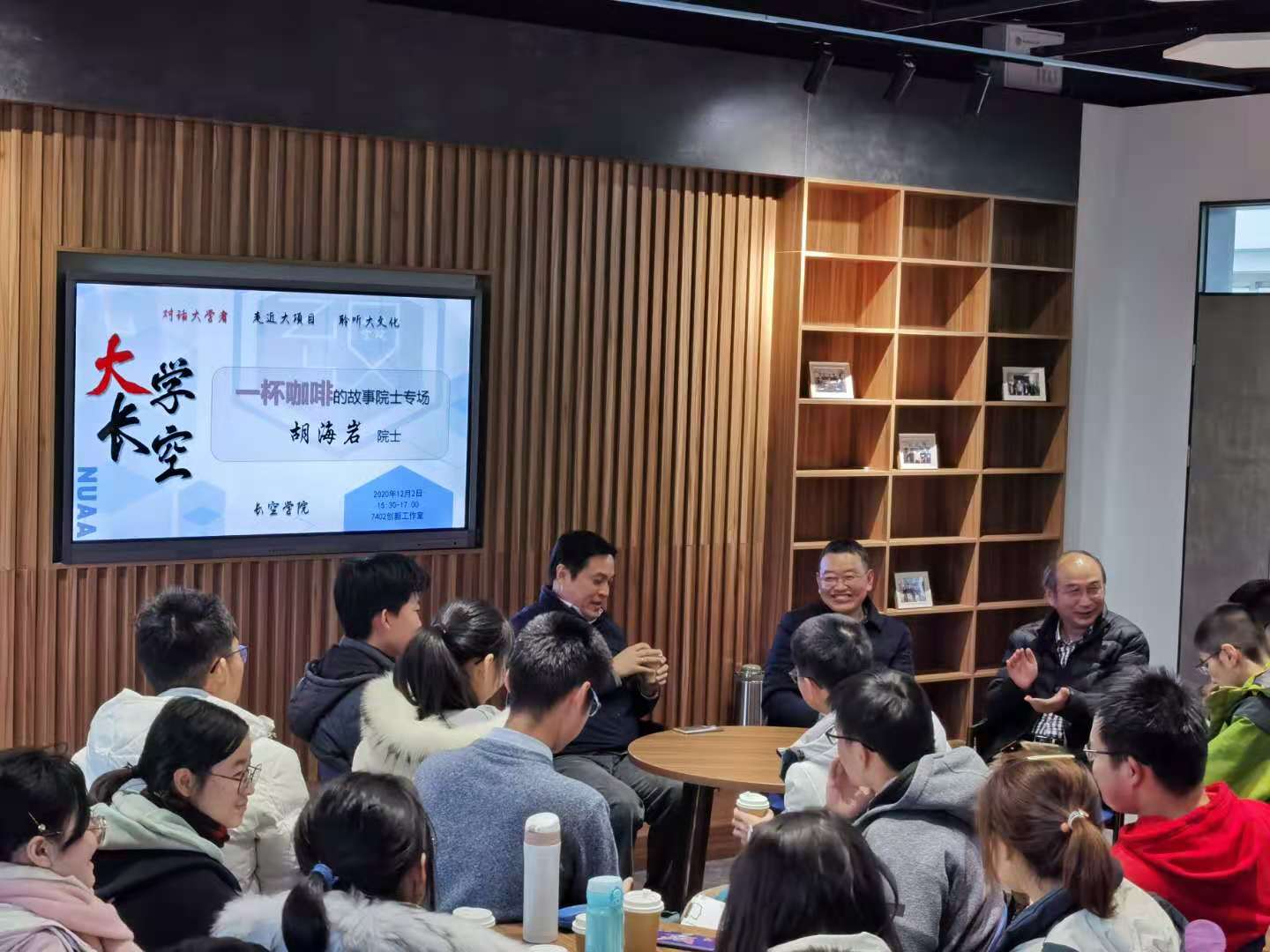 在随后的“一杯咖啡的故事”活动中,胡海岩与awc万象城体育学生围绕高等教育体制机制、学术与创新、学习与发展等主题展开了面对面的对话交流。他建议大学生积极转换角色,不要有太多焦虑包袱,主动求变,找准定位,持续发力,在攻克困难中锤炼意志、增进自信、提高本领。他指出航空航天类专业是南航的优势专业,具有深厚的学科底蕴和良好的社会声望,实体化建设awc万象城体育是学校人才培养模式的重要改革。胡海岩希望awc万象城体育在学生培养过程中,既要立足传统又要勇于突破,既要有整体规划又要兼顾特色发展,实现差异化、个性化人才培养,为国家培养更多具有长远发展潜能的一流人才。在谈及如何创新时,胡海岩特别强调追问的重要性,要对已有的知识抱有理性的怀疑态度,注重培养批判性思维,通过打牢学术基础、扎根专业领域、加强与人合作,努力成长为一流科研工作者。