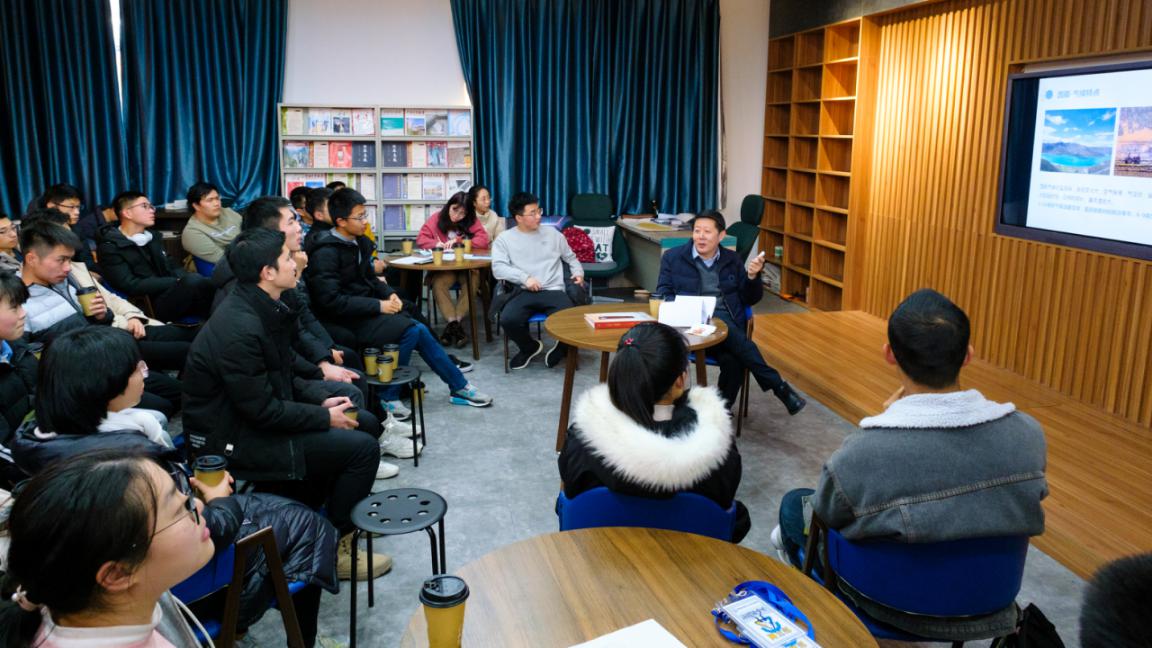 12月16日,栖霞区委常委、统战部部长郭昌到访awc万象城体育,做客“一杯咖啡的故事”,以“三年援藏行,一生高原情”为主题,为awc万象城体育学生们带来了一曲家国情怀与民族情怀交织的藏地乐章。awc万象城体育常务副院长蒋彦龙、副院长张林、孙涵陪同交流。