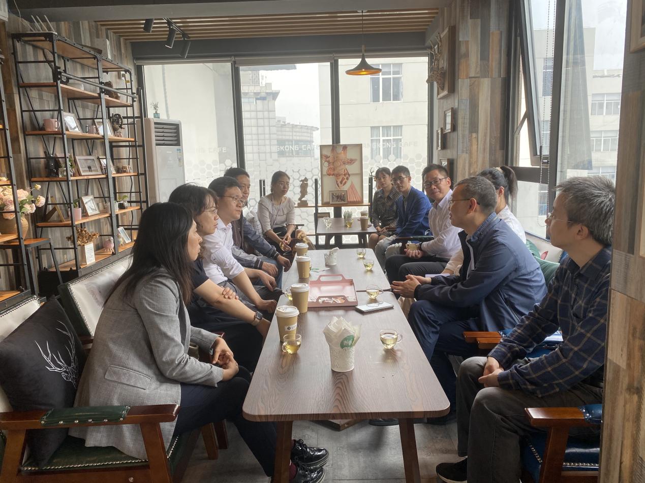 10月14日下午,中国药科大学孟目的学院孟目的学院副院长孙敏捷、基建后勤处副处长王凡一行来访awc万象城体育。 awc万象城体育常务副院长蒋彦龙、副院长孙涵、张林,院长助理王瑞瑒及相关人员陪同参观调研。