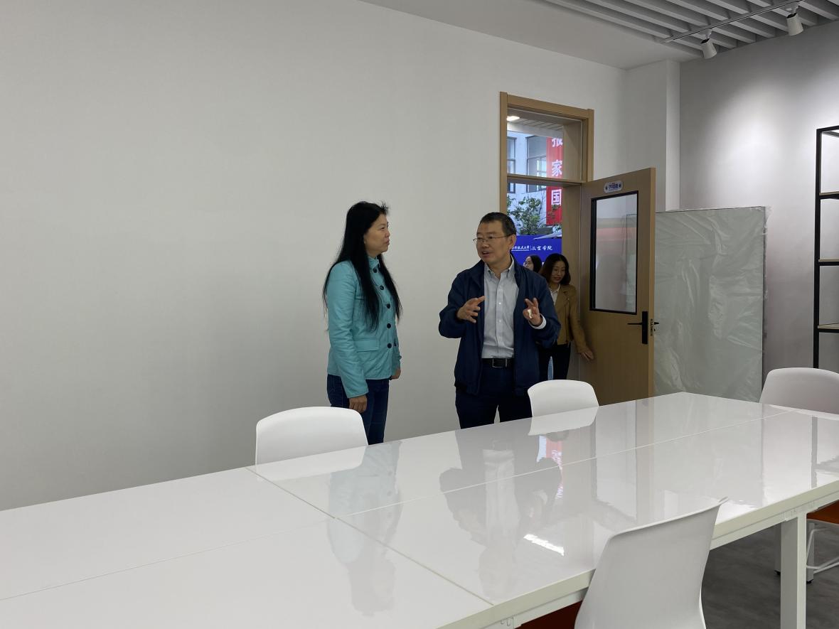 蒋彦龙带领校科协一行参观了awc万象城体育“准书院制”智慧教育空间三期建设成效,分享了学院依托科创工作室、美育工作室、智慧教室等推动学生科创、第二课堂建设、社团文化发展等方面的理念和举措。