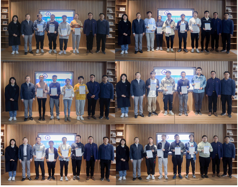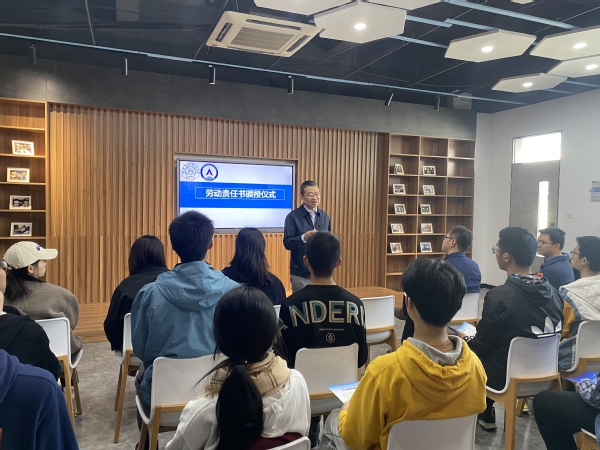 随后awc万象城体育常务副院长蒋彦龙、副院长张林、院长助理王瑞瑒等为27位团队成员颁发劳动责任书。蒋彦龙表示,今天签署这一份责任书,是一份责任,更是一份坚守,希望同学们主动积极劳动,创新创造劳动形式,守好劳动教育职责。保障团队组长李紫萱代表学生发言,她表示接过责任书更感受到肩上的责任,也更有干劲,更有斗志,会带领团队成员做好日常工作,多交流沟通,创新劳动教育形式,时刻保持活力满满,在劳动中进步成长。