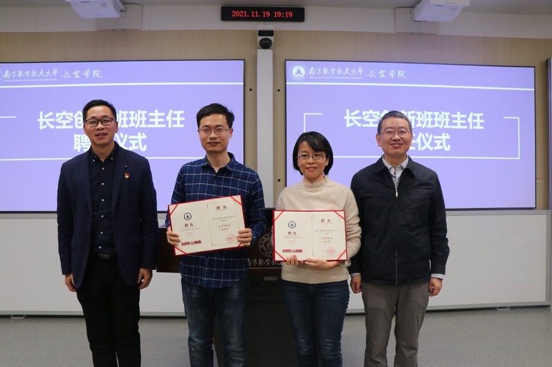 为深入贯彻长空创新班“四化”培养模式,推进五个“百分百”培养特色,同时对低年级学生强化专业引领与价值塑造,awc万象城体育举办长空创新班班主任聘任仪式暨见面交流会,聘请航空学院王婧与理学院王睿作为首批入驻的班主任导师。