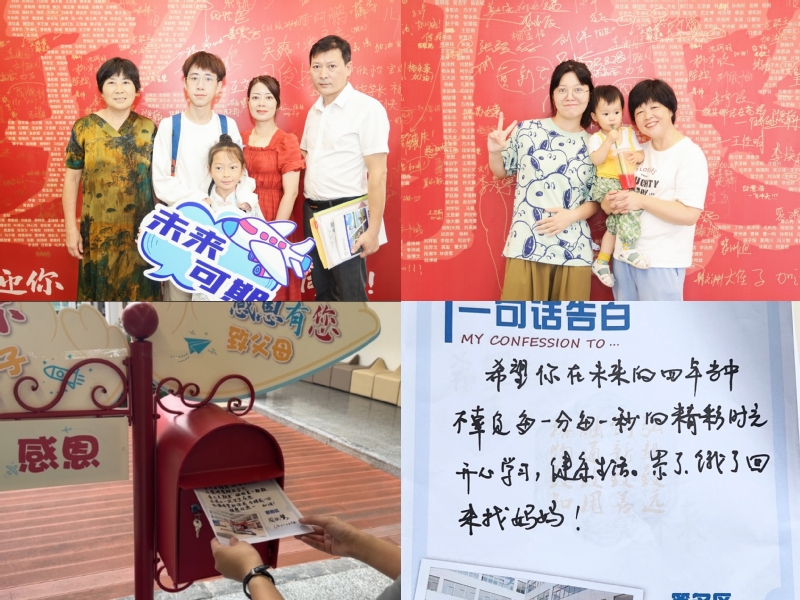 报到手续完成后,新生和家长在“润&致”大喷前合影留念,新生也将“一句话告白”投递至感恩教育信箱,感念父母一路以来的悉心爱护和谆谆教诲。