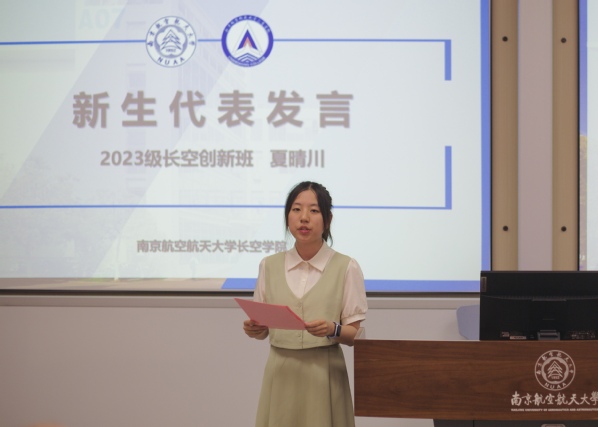 新生代表夏晴川讲述了自己成为创新班一员的自豪与对未来的热切期待,呼吁创新班学子们树立远大志向,坚定理想信念,以实际行动将责任意识、创新精神、国际视野和人文情怀的人才培养目标融入成长轨迹。