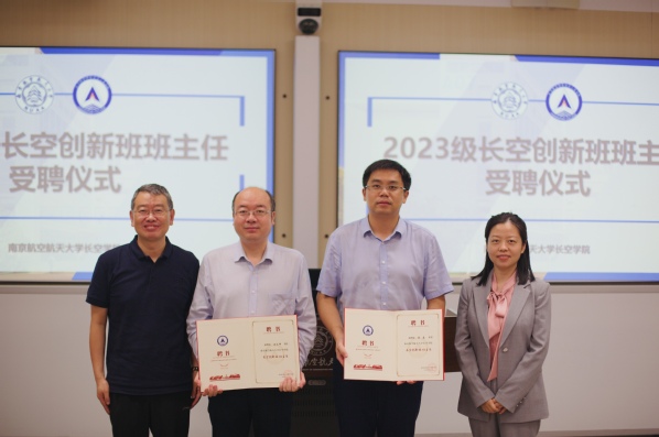 随后,蒋彦龙、彭聪为2023级长空创新班班主任颁发聘书。班主任王立峰、雷磊以自身求学科研经历勉励新同学们扎实学习基础知识、塑造独立人格、磨炼坚韧心智、厚植家国情怀,将“个人梦”融入到民族复兴的“中国梦”,赓续红色基因,成就蓝色梦想。