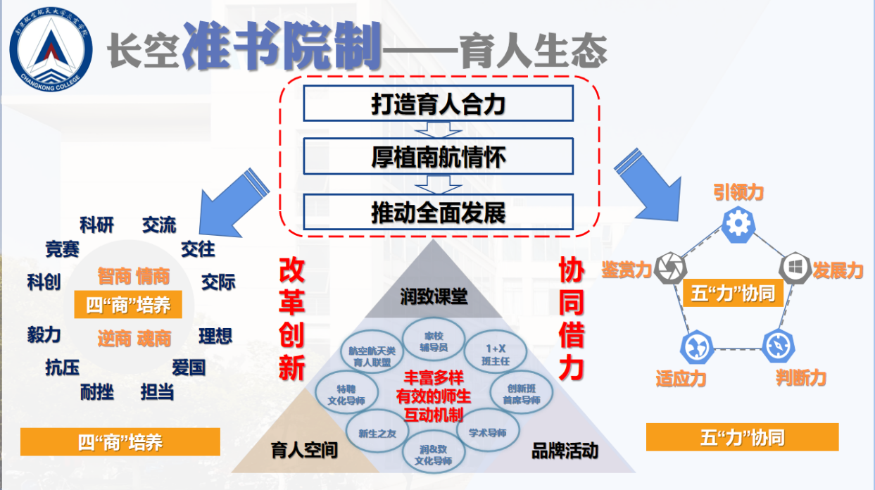 多年来,awc万象城体育聚焦“一流的环境怡悦学生、一流的资源面向学生、一流的教师融入学生、一流的管理服务学生、一流的文化熏陶学生、一流的品格塑造学生”的“六个一流”育人定位,以“更多元的书院、更温暖的教育、更开放的办学、更自主的学习”满足学生个性化、精准化、智慧化成长需求,探索优势大类与拔尖人才“双轨并进”协同培养新机制,建设数字赋能下的 “准书院制”全场域智慧教育空间新载体,构建内外循环相济共生的“跨界融合”协同育人新生态,形成了“润&致”文化体系下“多主体参与、多要素耦合、多生态共济”的有组织育人共同体,为行业特色型高校拔尖创新人才自主培养提供了“南航范式”。