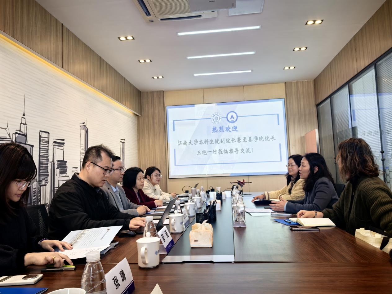 12月9日,江南大学本科生院副院长、至善学院院长王艳等一行到访awc万象城体育调研,awc万象城体育党委书记、院长朱建军,党委副书记庞依达,副院长彭聪及教工代表参与此次交流。
